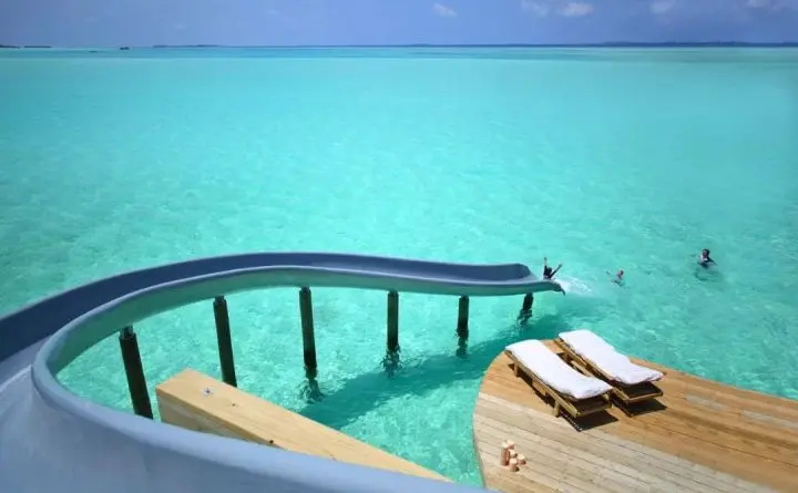 Jani在馬爾代夫當(dāng)?shù)谼hivehi語中的意思是“最親愛的”,它是馬爾代夫的珍寶之島,擁有純凈的白沙灘,如畫的棕櫚樹和閃動著美妙色澤的環(huán)礁。作為世界上為數(shù)不多的低密度度假村之一,她被5.6平方公里盡是水清沙幼的環(huán)礁湖環(huán)繞,還能360°全方位環(huán)視印度洋,綿延5千米的海域僅僅建造了25座別墅。獨一無二的滑梯重新定義海島度假的新玩法,這讓早已過了玩滑梯年齡的游客重新享受著這種童真的快樂。