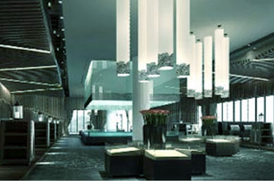 生態(tài)酒店內(nèi)部廣布植物,需要大面積的采光;表現(xiàn)自然山水的氛圍,注重陽光與園林植物形成自然的光影效果,提高表現(xiàn)力。